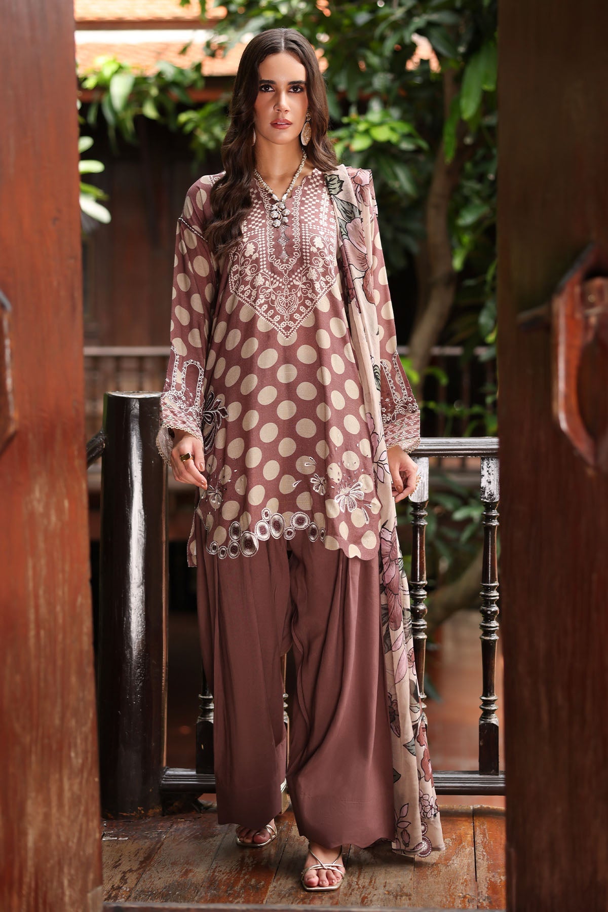 - Printed And Embroidered Viscose Slub Shirt