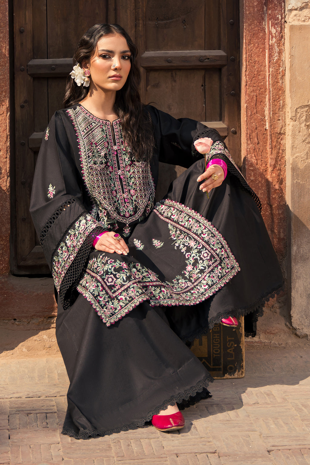 Embroidered chiffon dubata ( 2.88 yards)