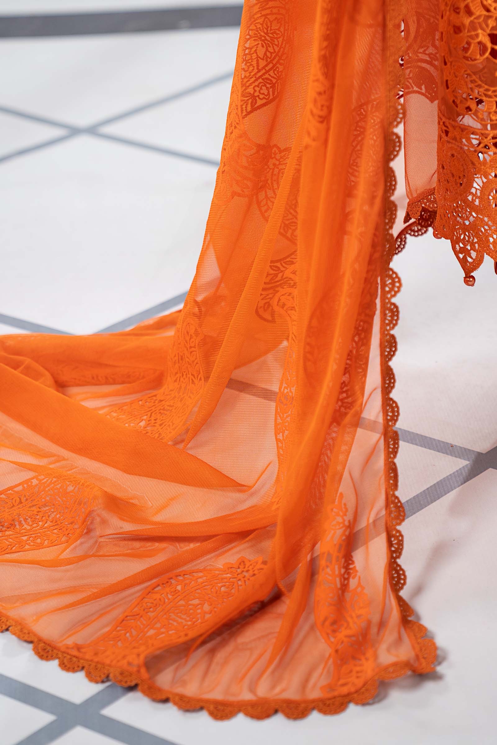 Embroidered Organza Neckline With Loops Buttons, 3D Flowers & Pearls Detailing