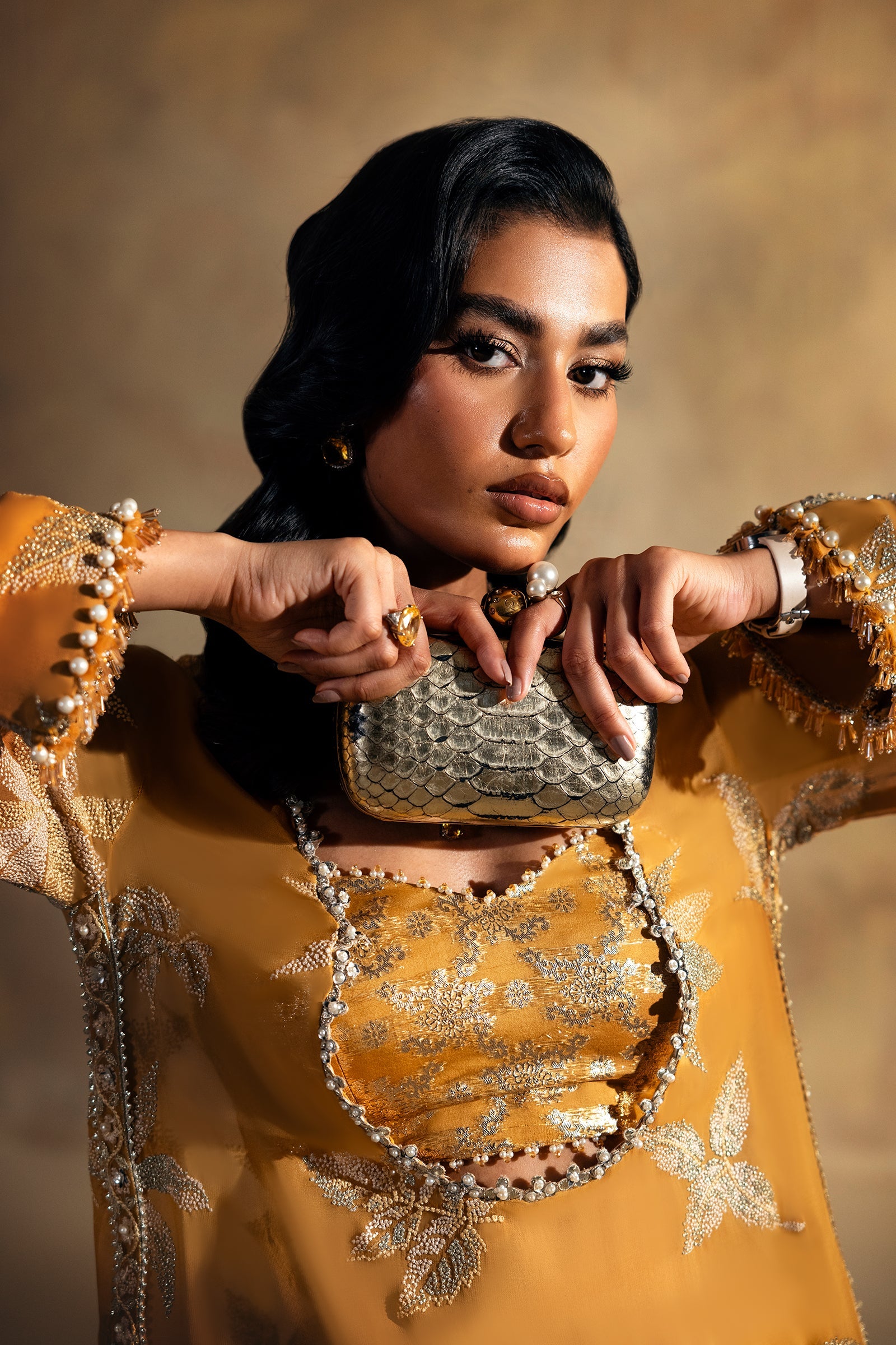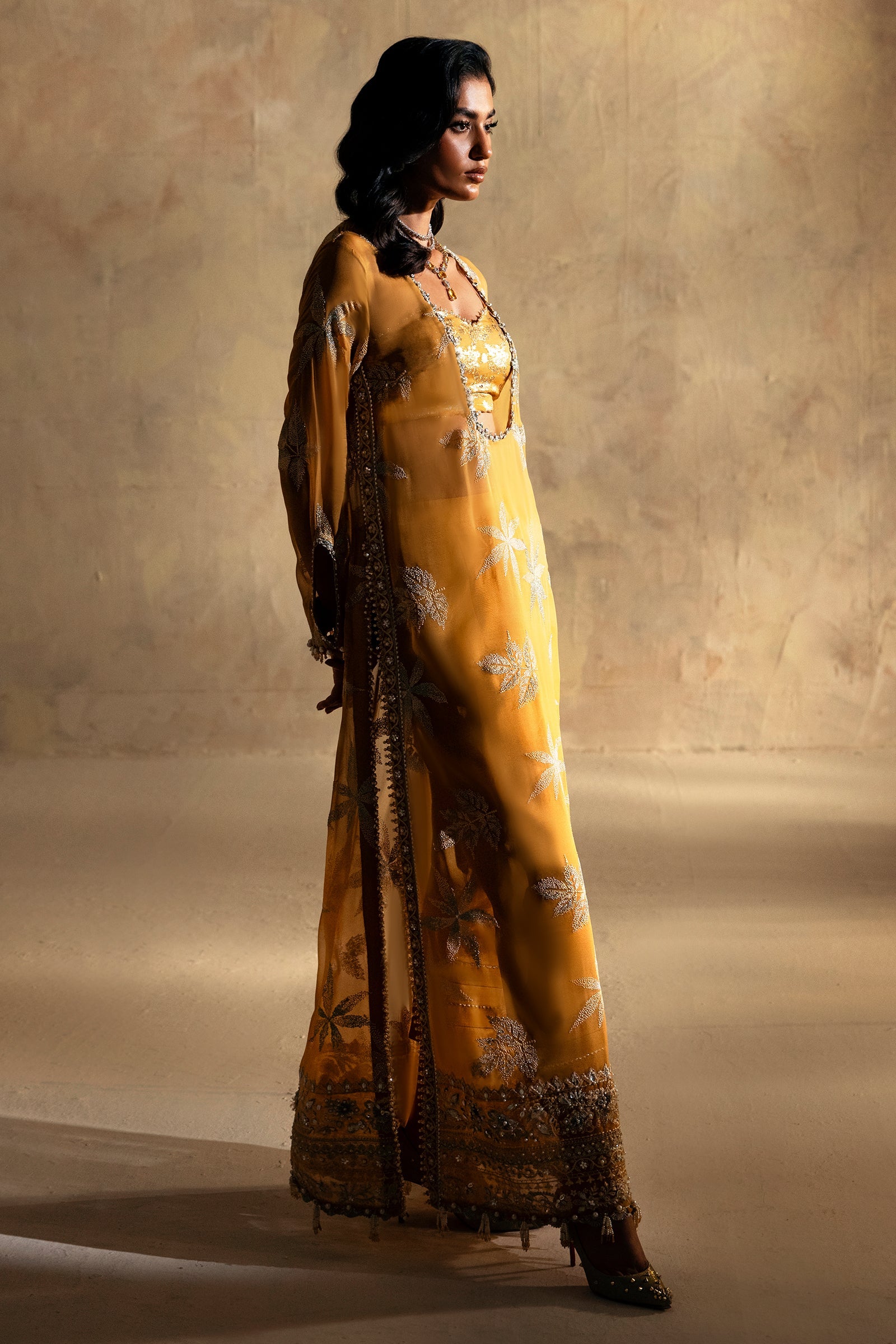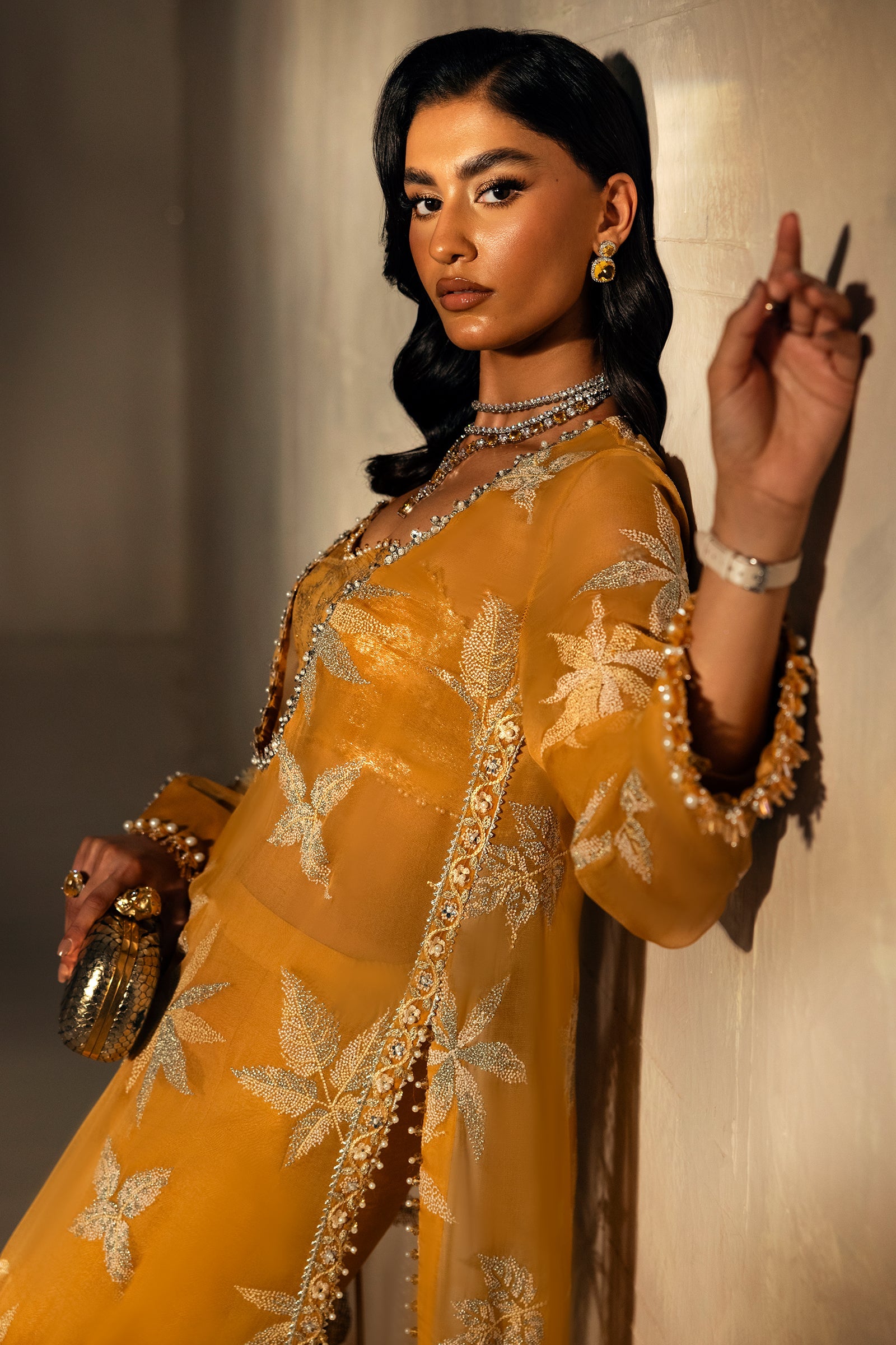 Immerse yourself in the sunlit splendor of 'Éclat du Soleil,' where the warm embrace of Tuscany yellow chiffon sets the stage for breathtaking monotone floral artistry. This sublime fabric unveils endless styling possibilities, allowing you to create a range of opulent looks designed for the most discerning occasions. Revel in the whimsical charm and versatile sophistication of 'Rose D'or,' as you enter any event with unparalleled grace and elegance. Craft this exquisite ensemble to captivate and enchant this wedding season, ideal for making an unforgettable impression at mayos.