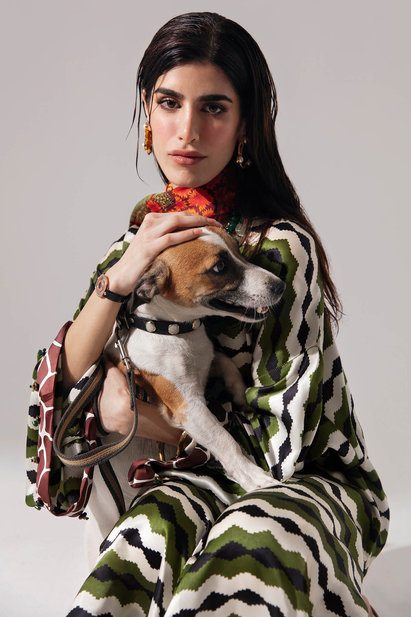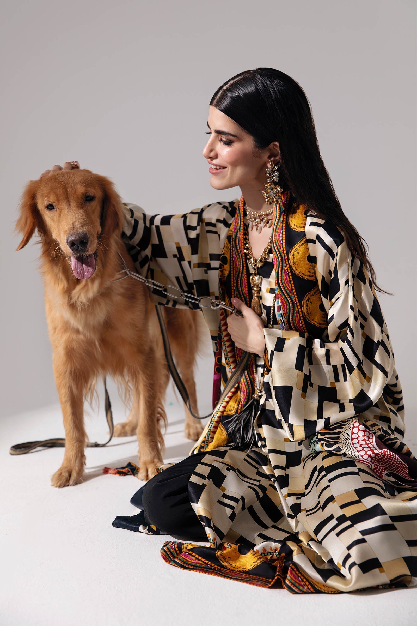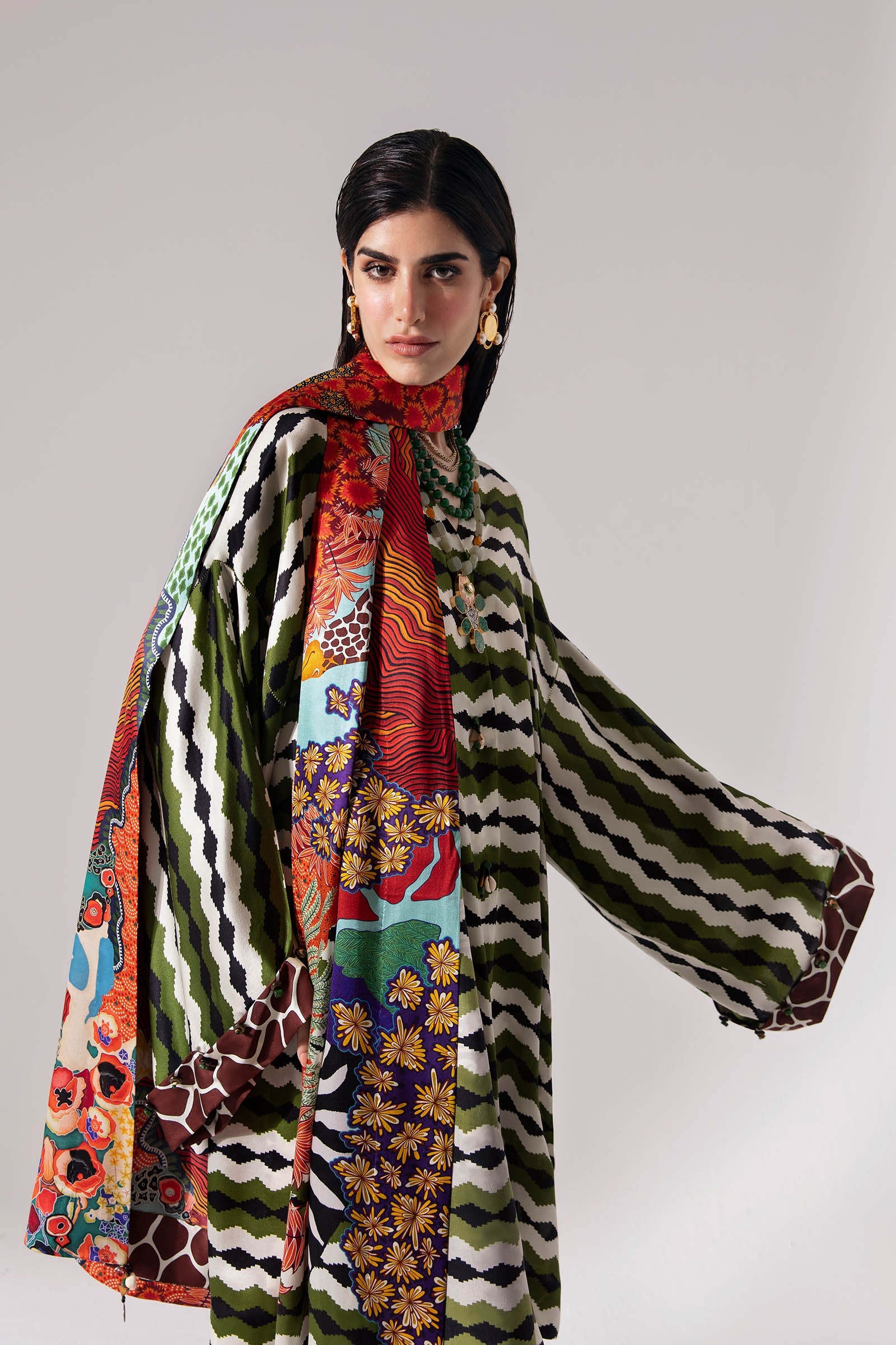 Radiate absolute splendour in the exquisitely illustrated ‘Eshe’; featuring an irresistible blend of luminous ornamental and geometric prints with wild florals and critters swirling on the sumptuous silk canvas. This stunning ensemble depicts the clash of scarlet and ebony with contrasting textures and imagery to highlight the richness of African art and thought. ‘Eshe’ creates for a striking ensemble that is not only bold but a perfect fit for the quintessential Élan woman who’s not afraid to command attention.