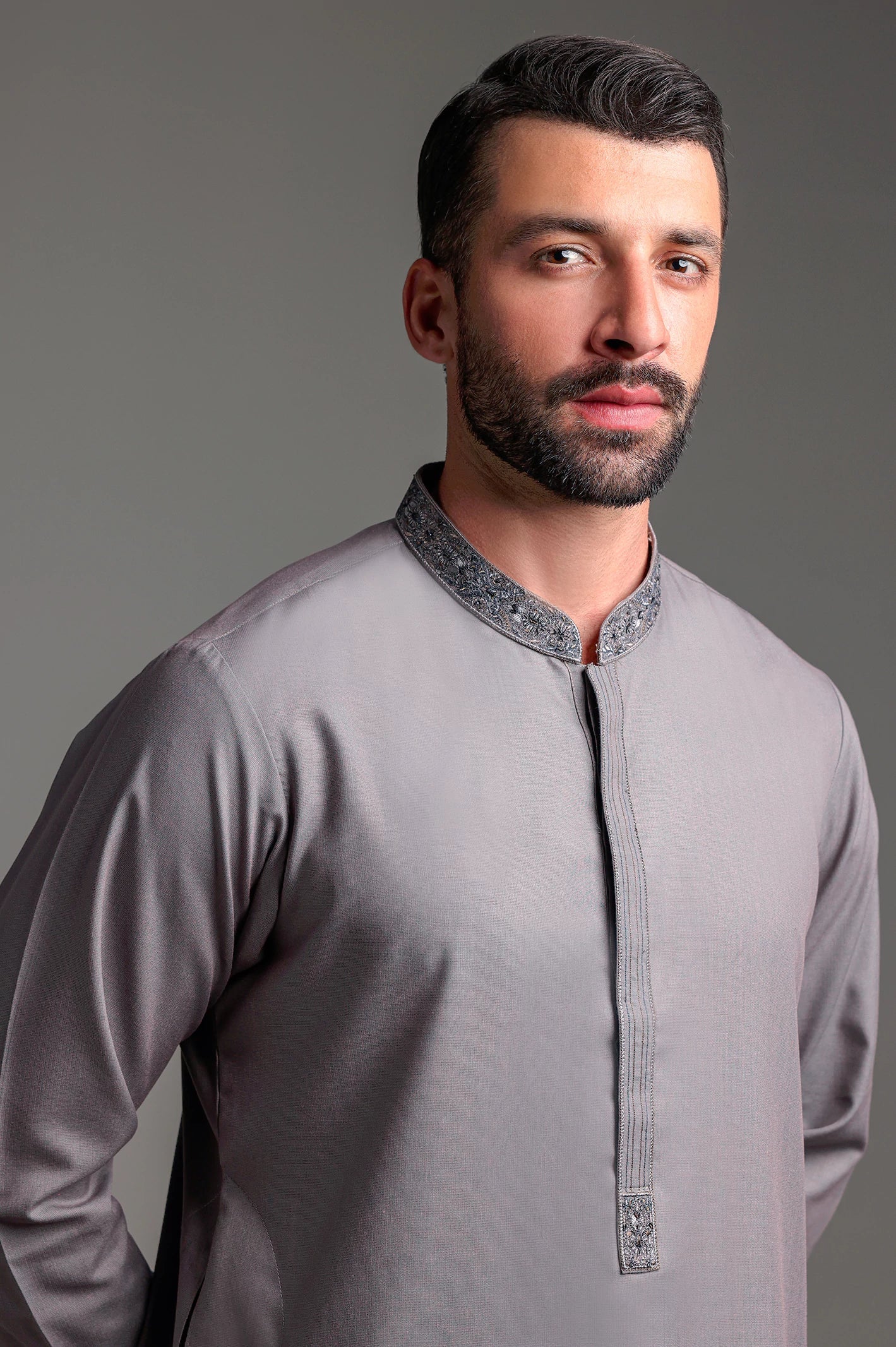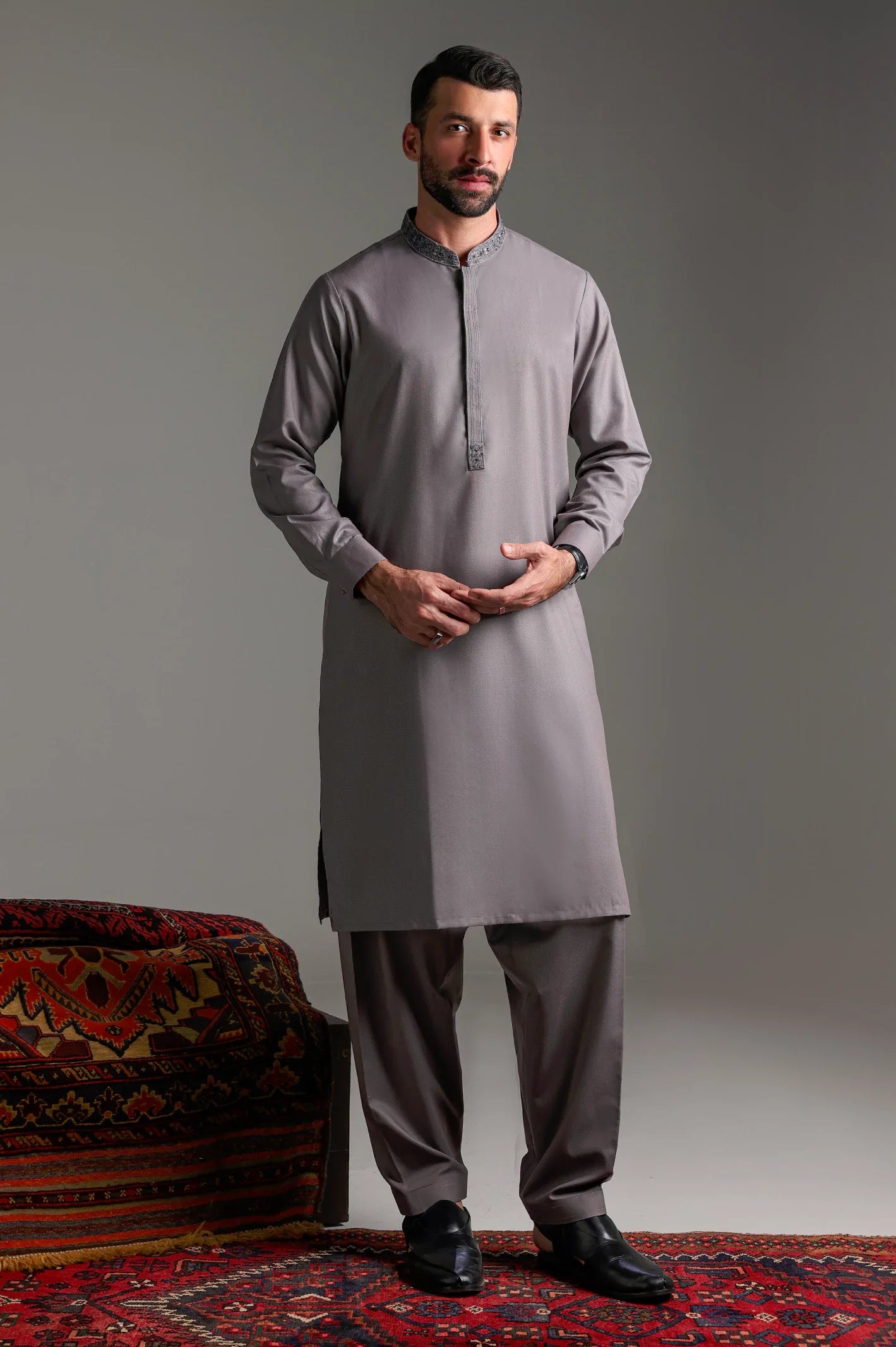 Simple yet stylish, this blended kameez shalwar offers classic elegance and versatility, perfect for a range of occasions and settings.