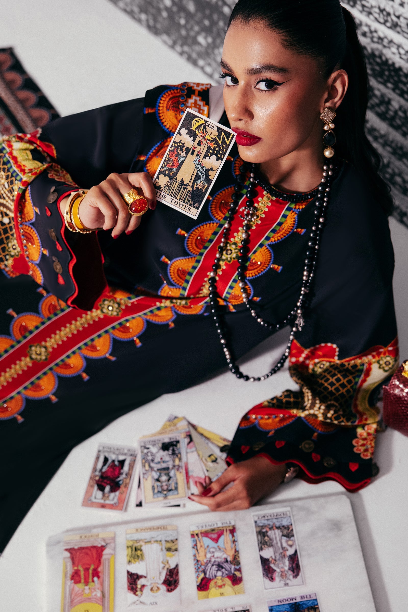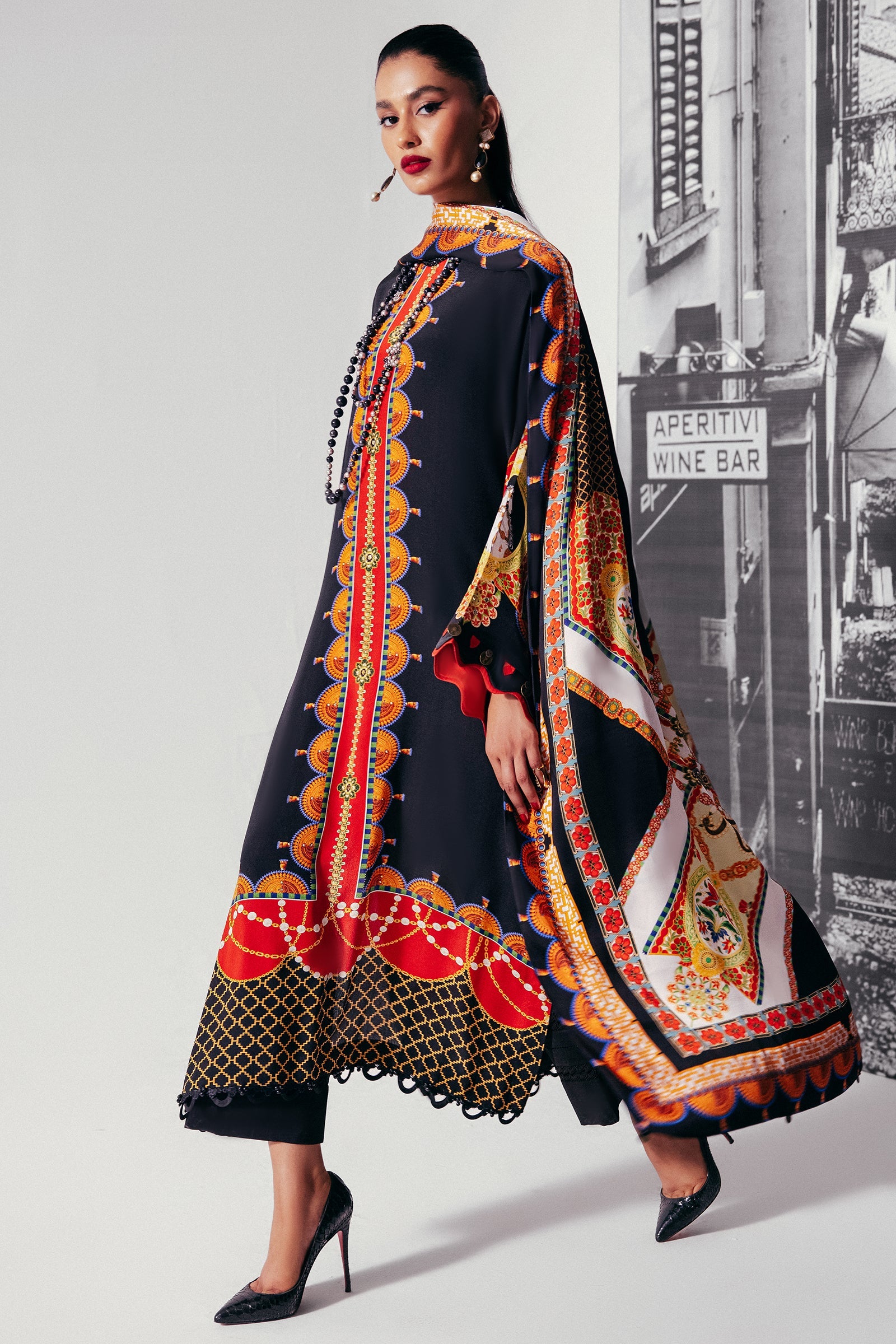 Radiate absolute splendor in the exquisitely illustrated 'Amelie,' a luxurious Elan silk ensemble. This masterpiece features an irresistible blend of luminous geometric prints, showcasing a vibrant clash of bold colors and deep ebony. Intricate textures and imagery pay homage to the richness of African art and thought, creating a striking ensemble that is both bold and sophisticated. 'Amelie' is the epitome of elegance, designed for the quintessential Elan woman who effortlessly commands attention and exudes confidence.