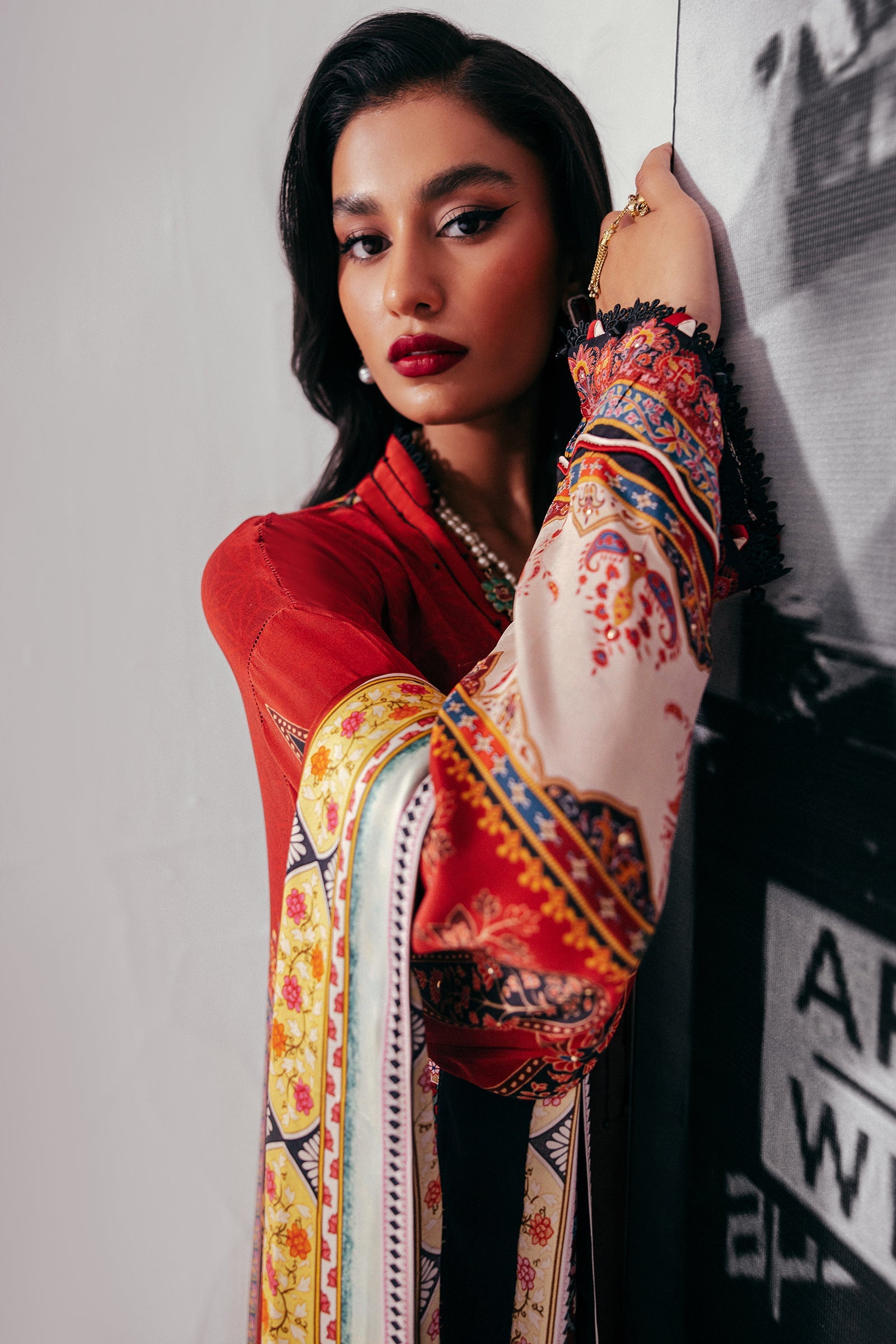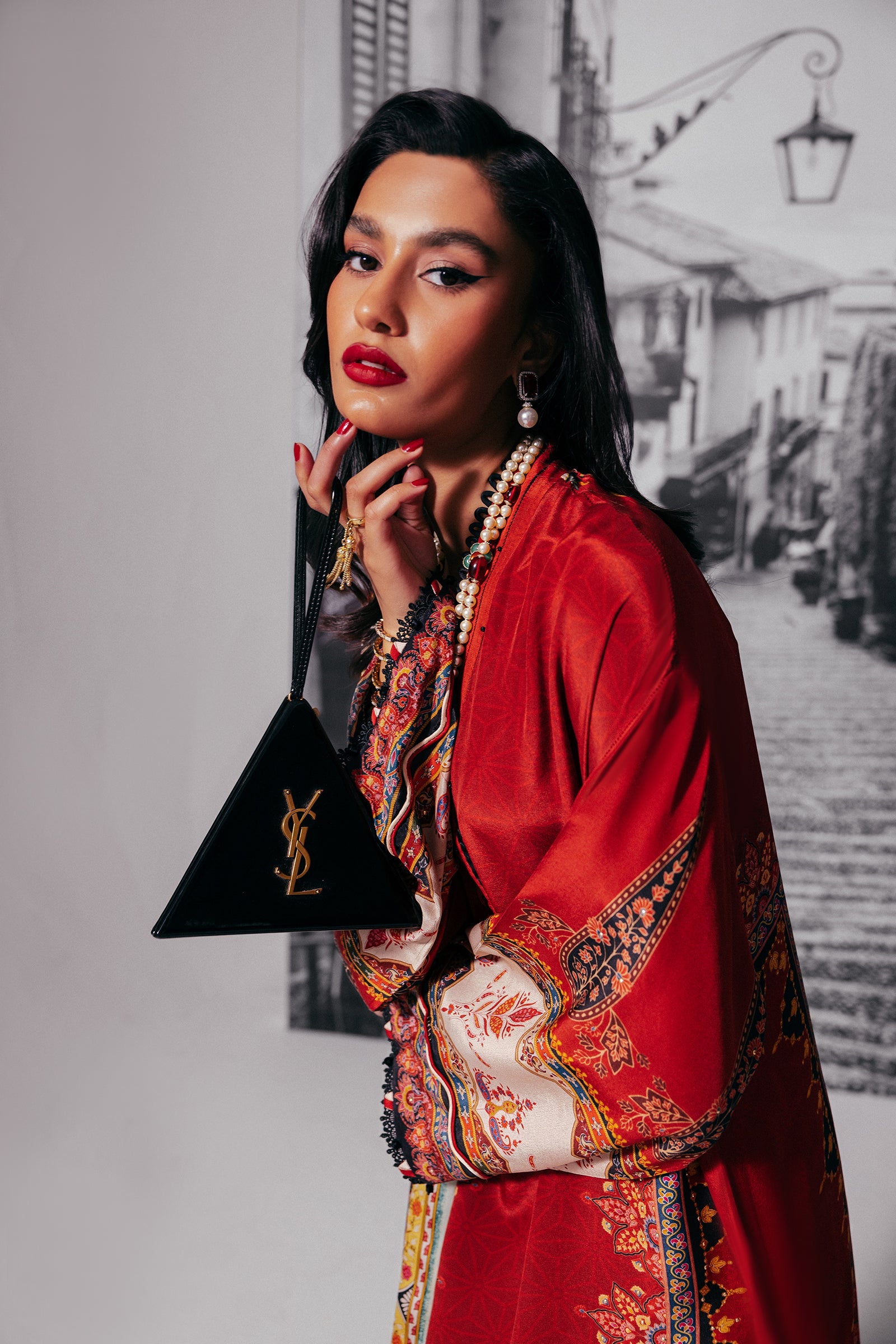 Paired with an artsy dupatta framed by meticulously crafted borders, 'Chérie' epitomizes playful versatility and classic elegance. Elevate your wardrobe with this exquisite Elan creation, where every detail is a testament to luxury and refined taste.