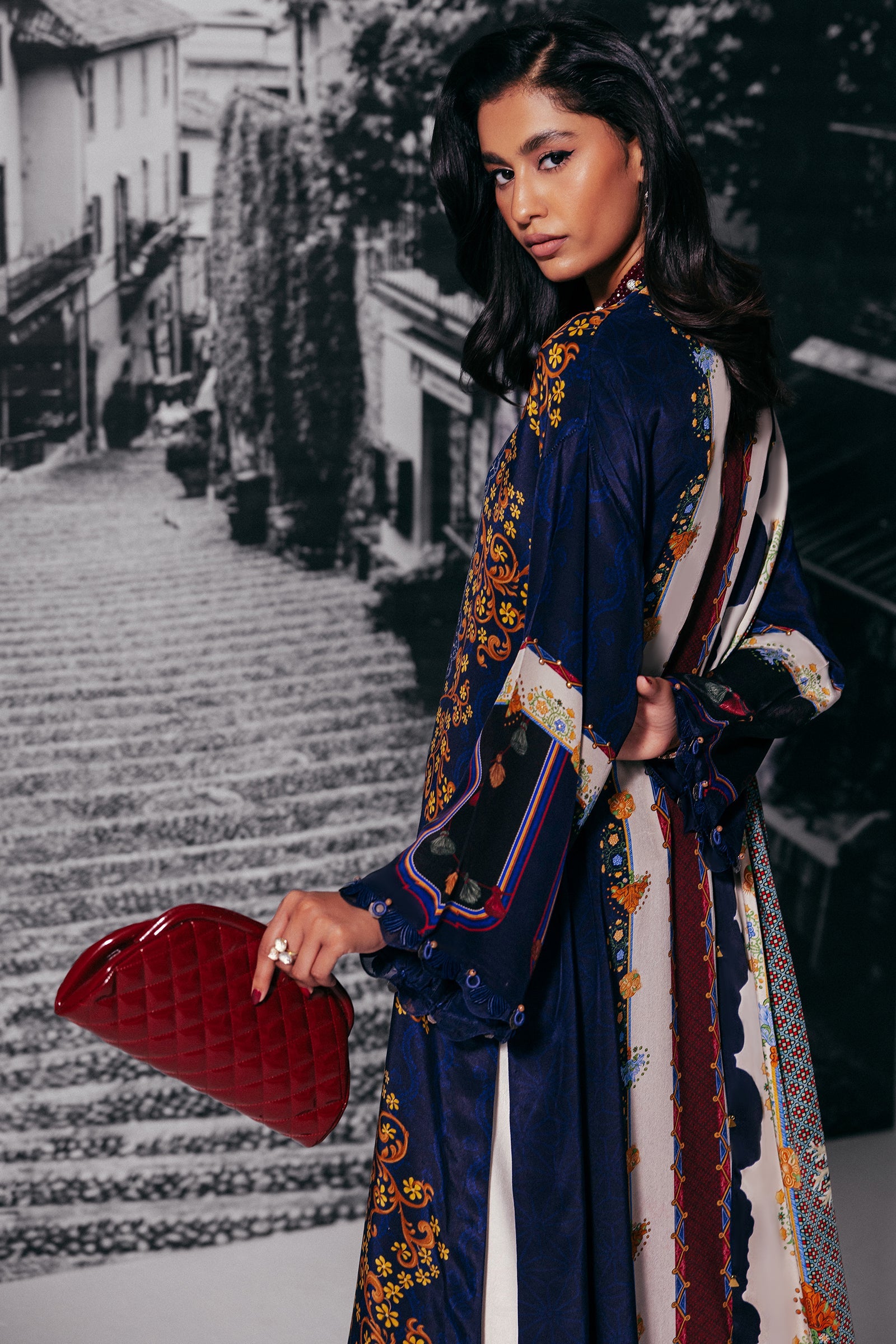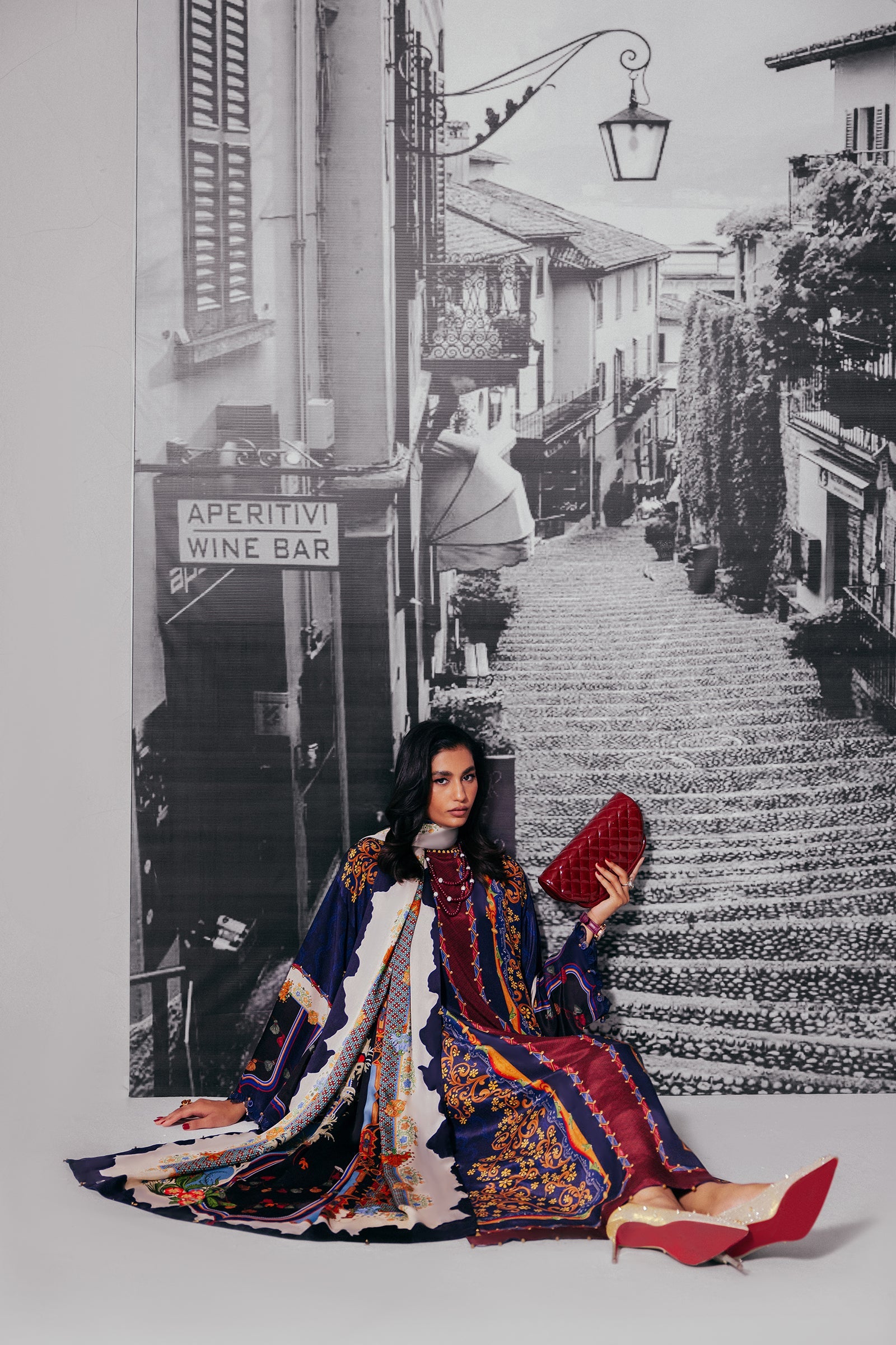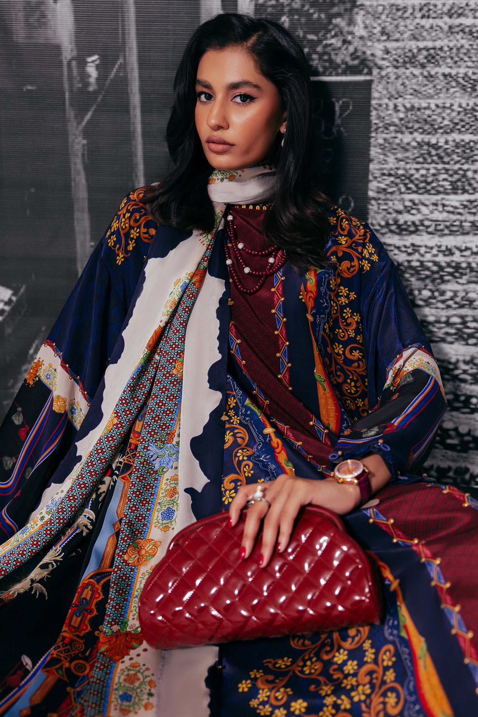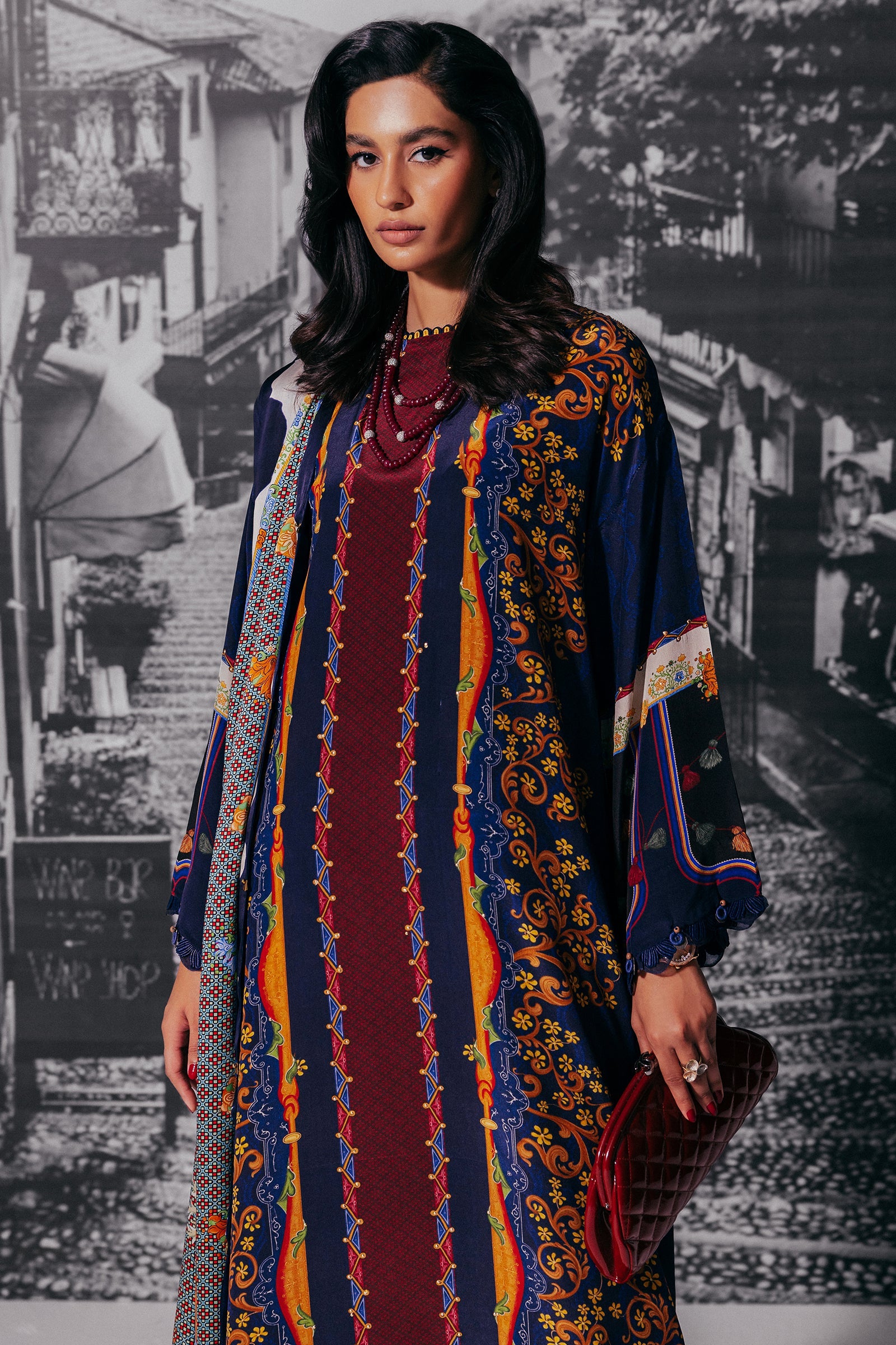 Behold 'Étoile': a testament to exquisite artistry and refined taste. This exceptional shirt is crafted from opulent obsidian silk, showcasing meticulous color blocking in shades of indigo, deep red, and ivory. The intricate pattern, reminiscent of golden honey and pumpkin, adds a rich, ornamental touch. Paired with an artfully designed dupatta, this ensemble is the epitome of luxury and sophistication, This is a perfectly apt look for a woman who wants to make all heads turn!