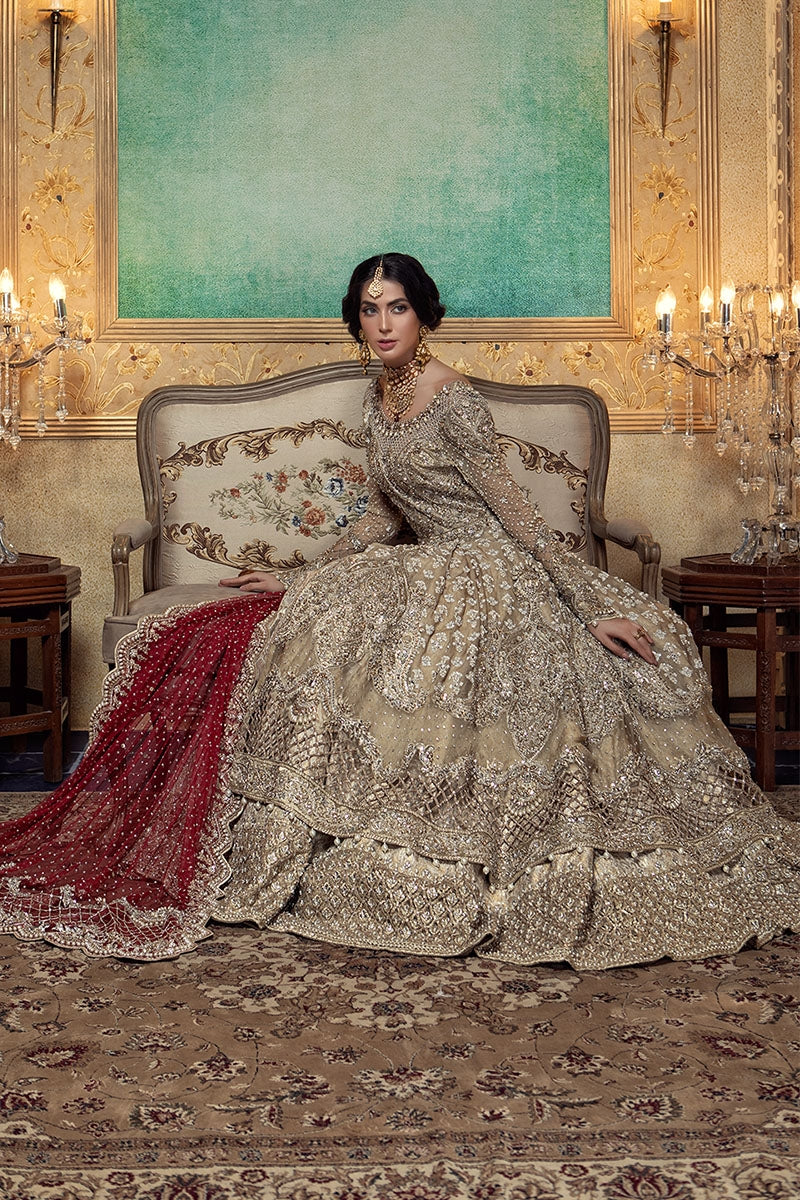 An embodiment of timeless glamour, our signature 'YASM' is the work of intricate hand embroidery with ornate botanical depictions. The look is highlighted with sequins, diamantes, pearls, stones, and works of dabka naqshi.This opulent combination exudes elegance and sophistication.