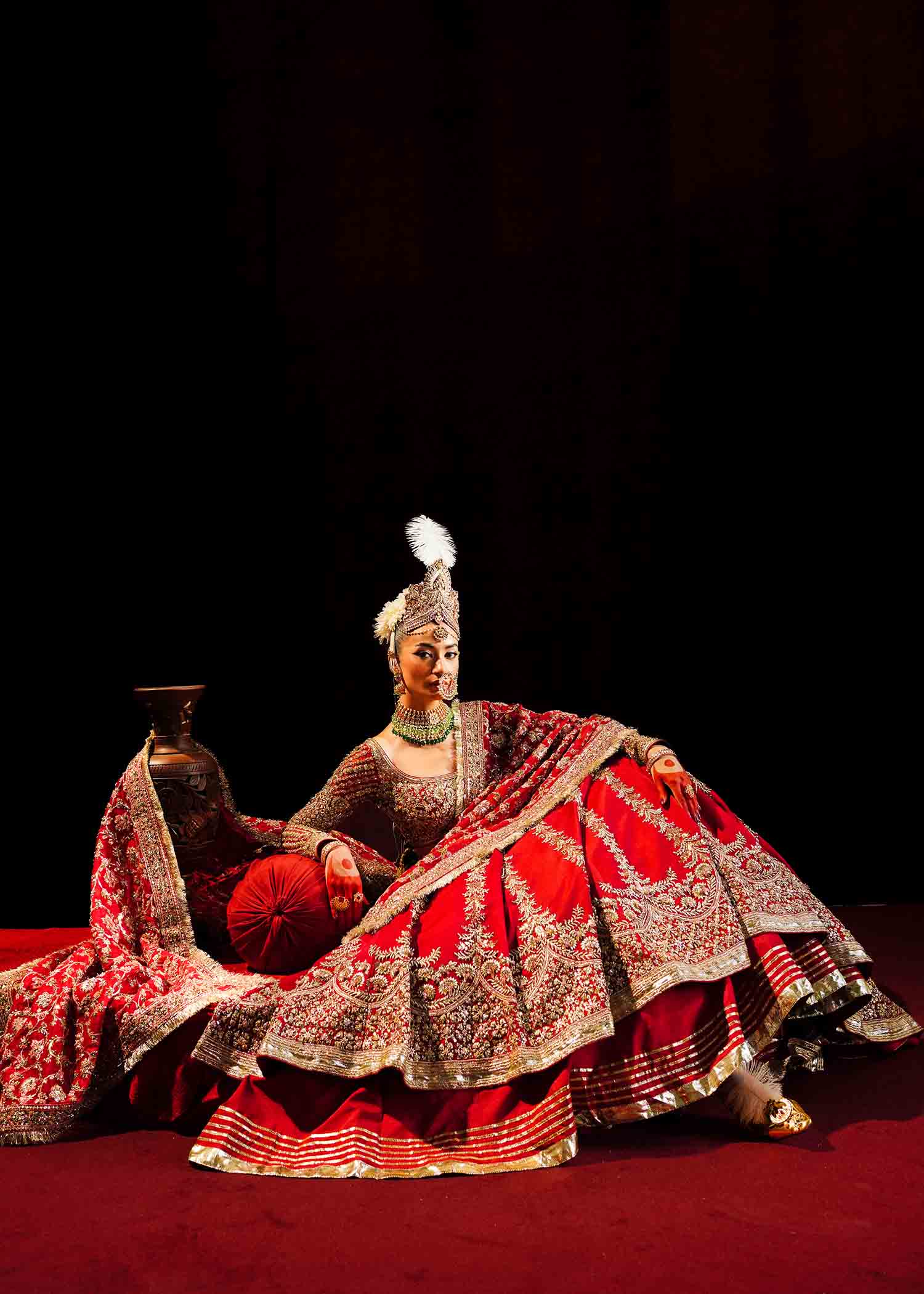 This ravishing bridal outfit is rendered in a beautiful shade of red composed on pure satin silk lehanga with an intricate and exquisite detailed adda work of sequins, buggle beads, resham, nakshi and dabka makes truely an artwork. pure organza choli add a touch of ethereal charm, elevating the ensemble to new heights of elegance. To complete the look paired it with organza duppata composed of heavy floral jall in the middle and heavily embellished four side border gives an ethnic regality.