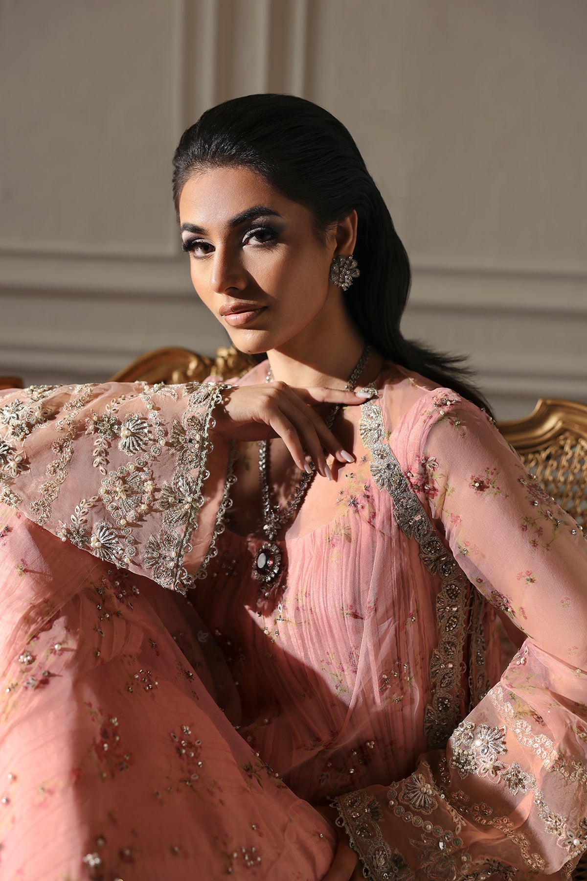 - Printed Hand Embellished Sleeves (Organza) - 1.5 M