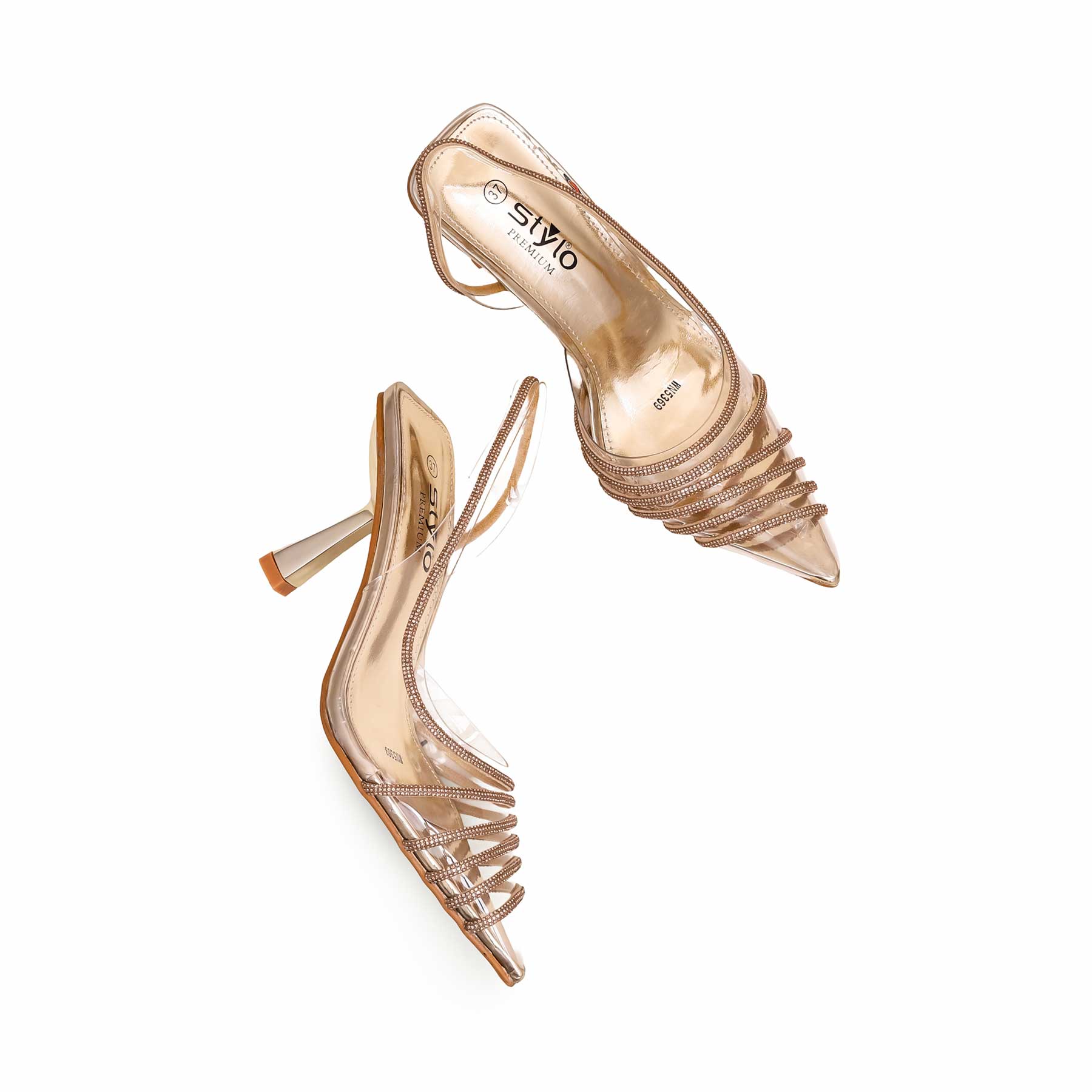 Step into effortless style with these golden back open shoes, offering a perfect blend of comfort and elegance for any occasion.