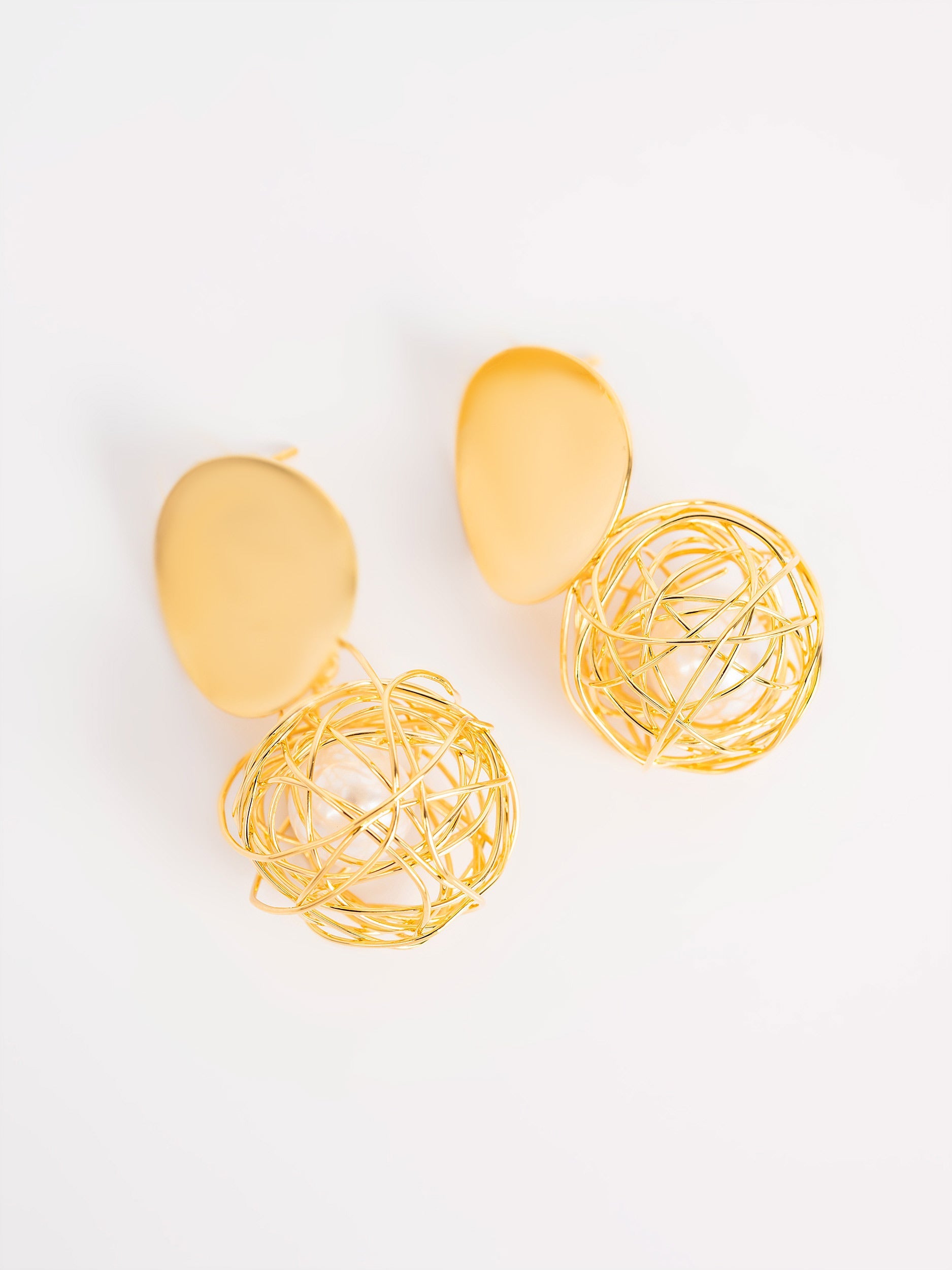 - Caged pearl drop earrings