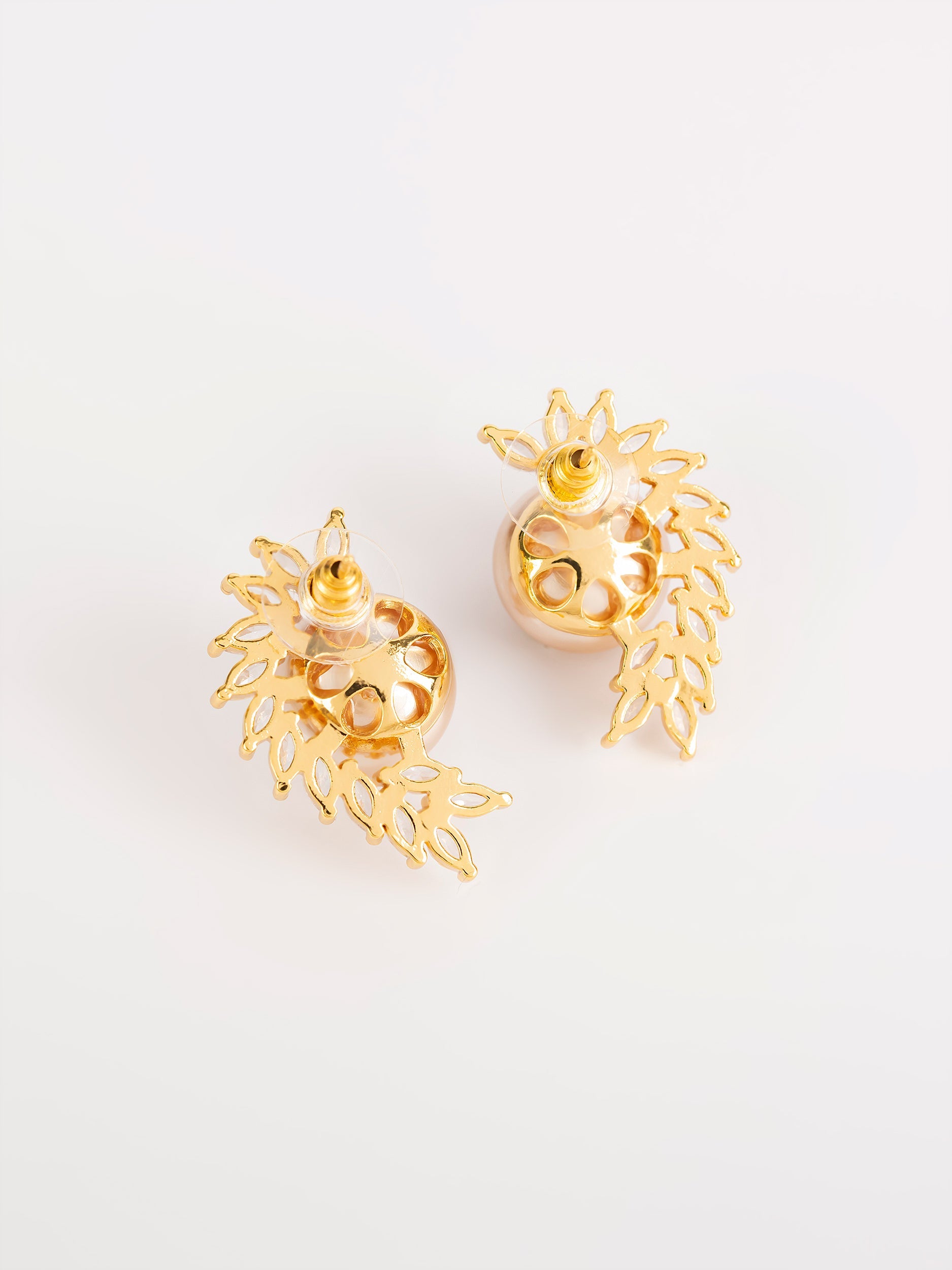 - Curvy stone embellished earrings with a pearl