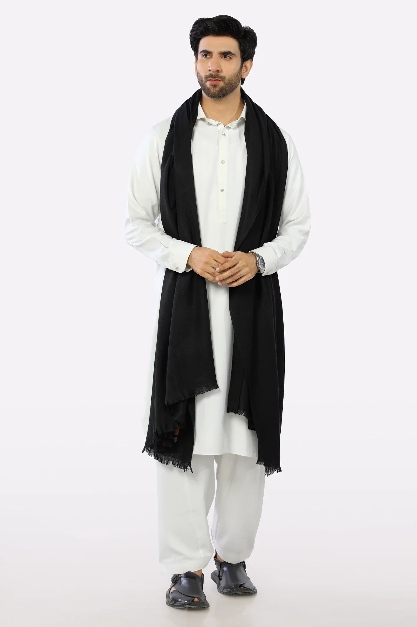 Black Wool Shawl for Men