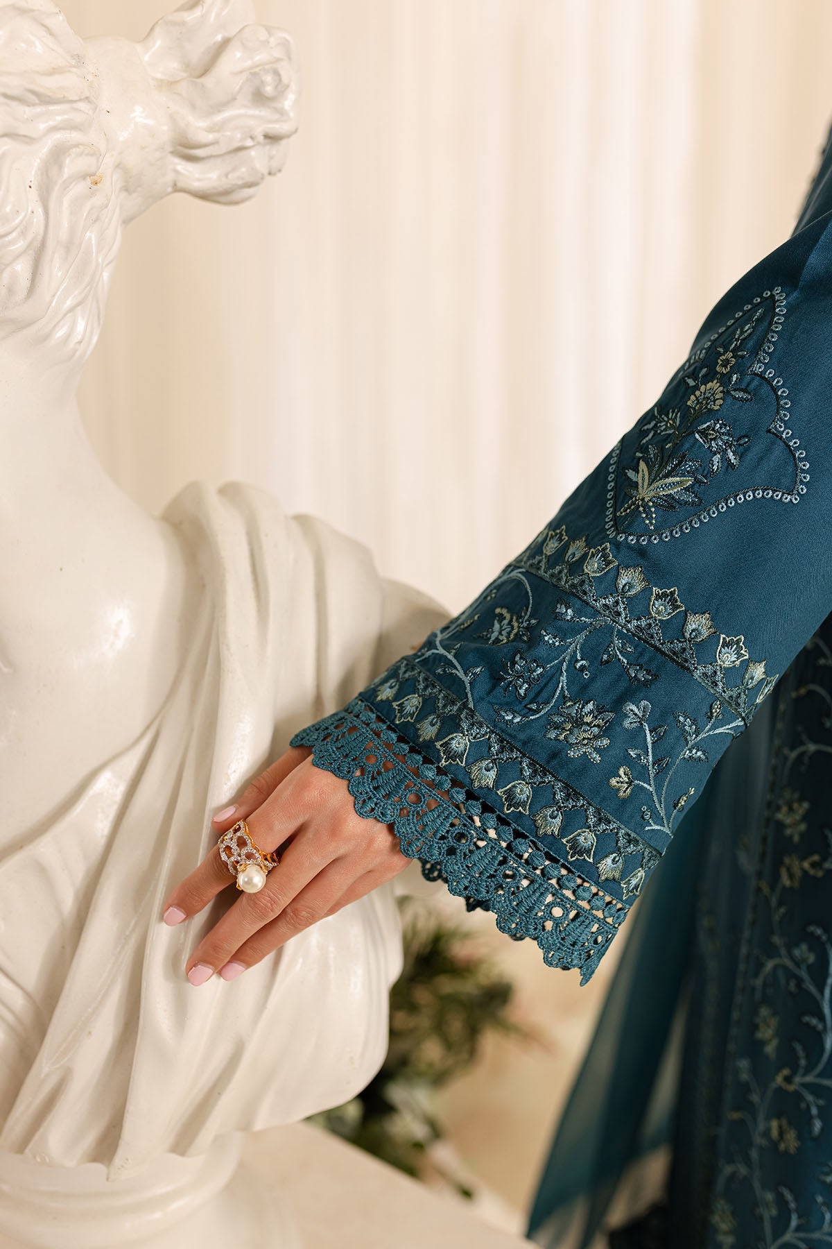 - Embroidered Linen Shirt Paired With Embroidered Chiffon Duppatta And Dyed Linen Trouser