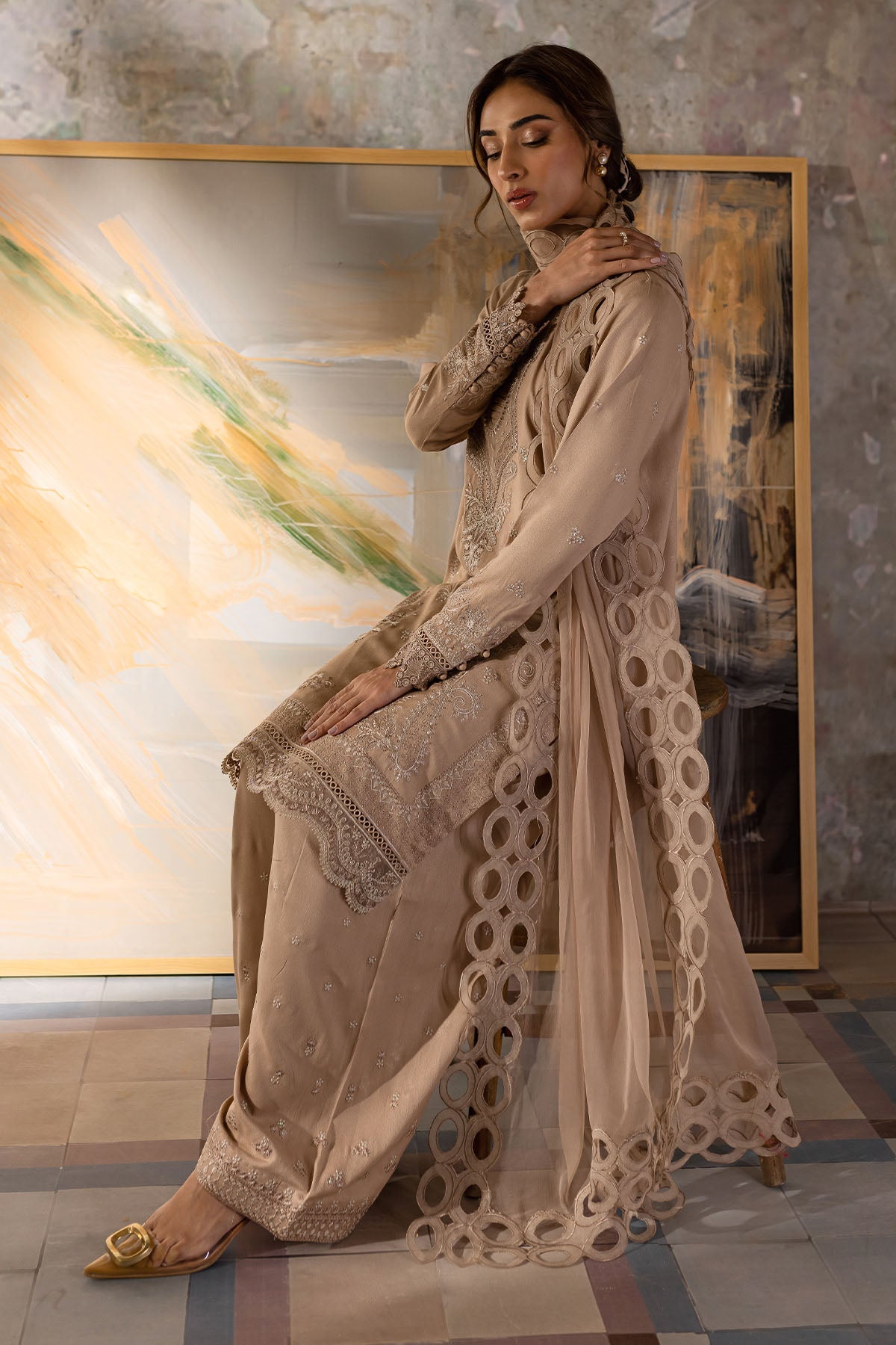 - Embroidered Crepe Shirt Paired With Embroidered Chiffon Dupatta And Embroidered Crepe Trouser