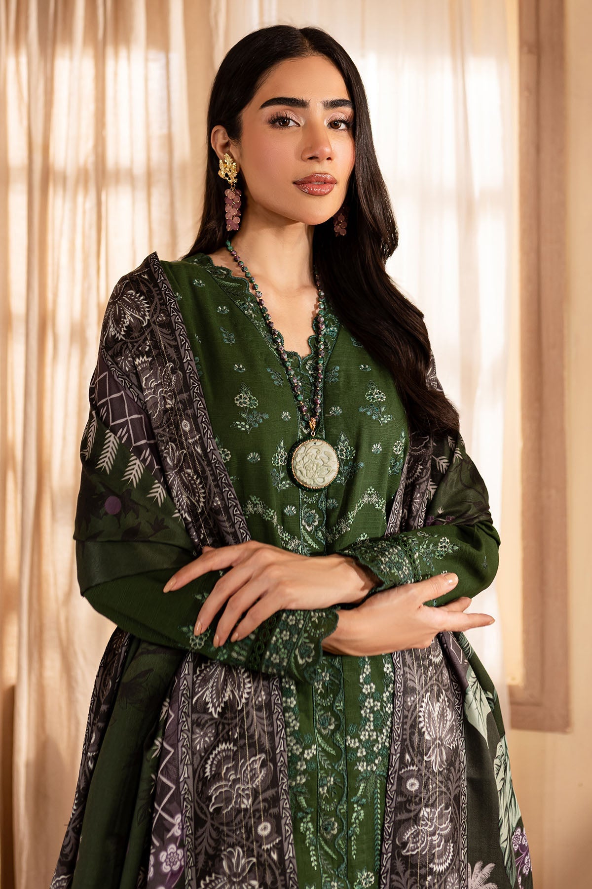 - Embroidered Khaddar Shirt Paired With Printed Woolen Shawl And Dyed Khaddar Trouser