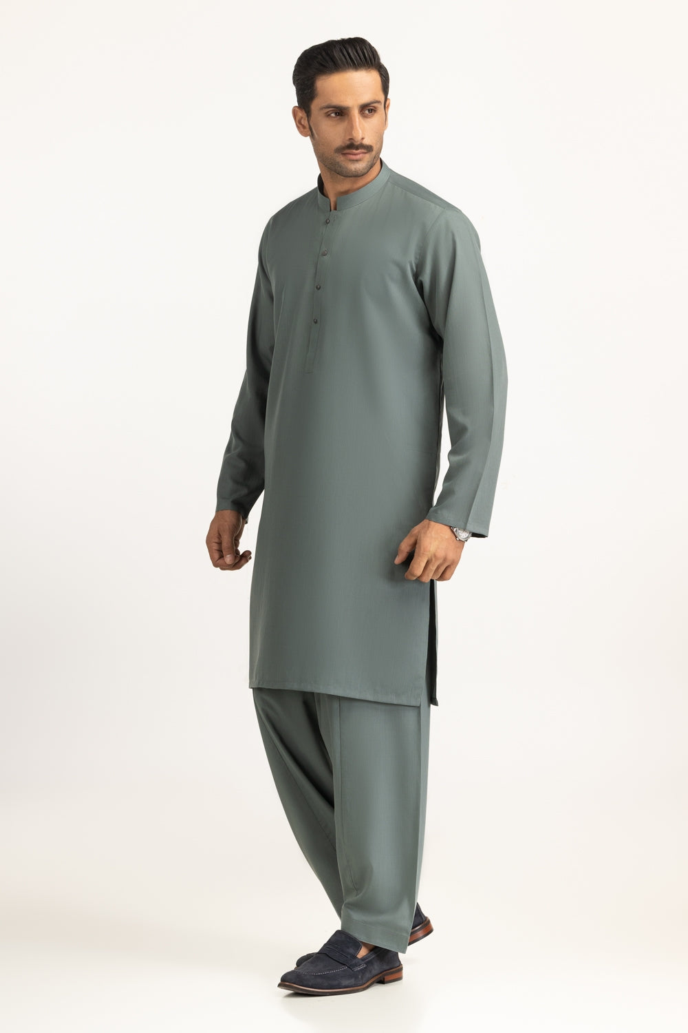 This basic-classic Kameez Shalwar seamlessly blends elegance with tradition, crafted with style and sophistication