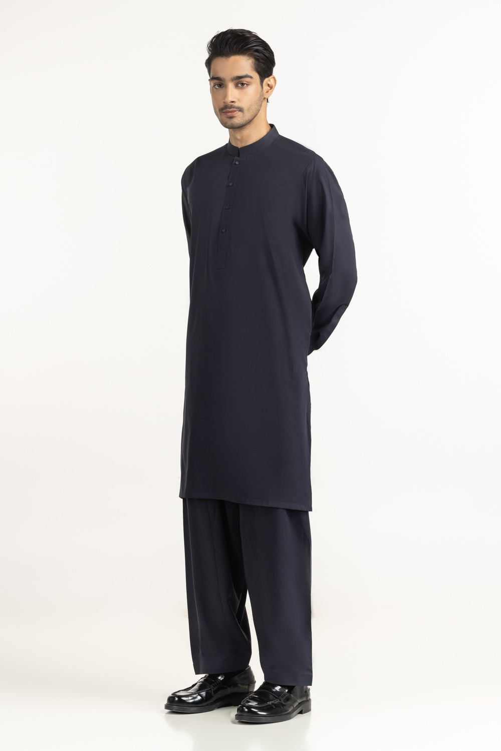 This basic-classic Kameez Shalwar seamlessly blends elegance with tradition, crafted with style and sophistication