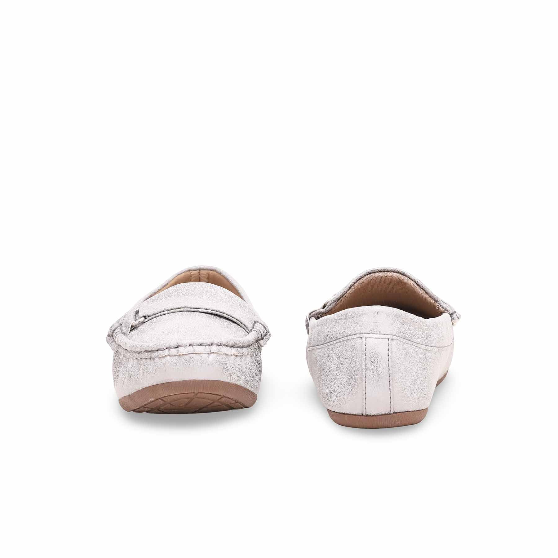 Stylish and comfortable, these silver moccasins combine a classic look with a cozy fit, making them ideal for casual wear.