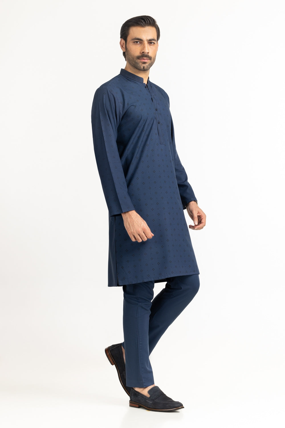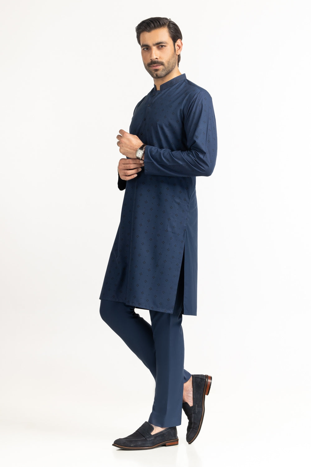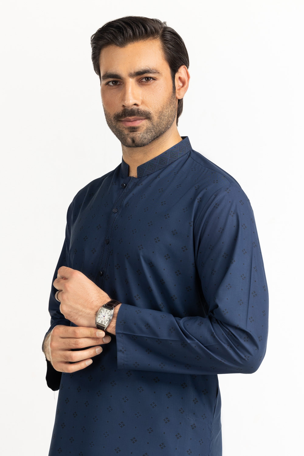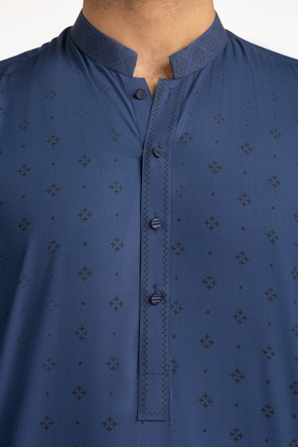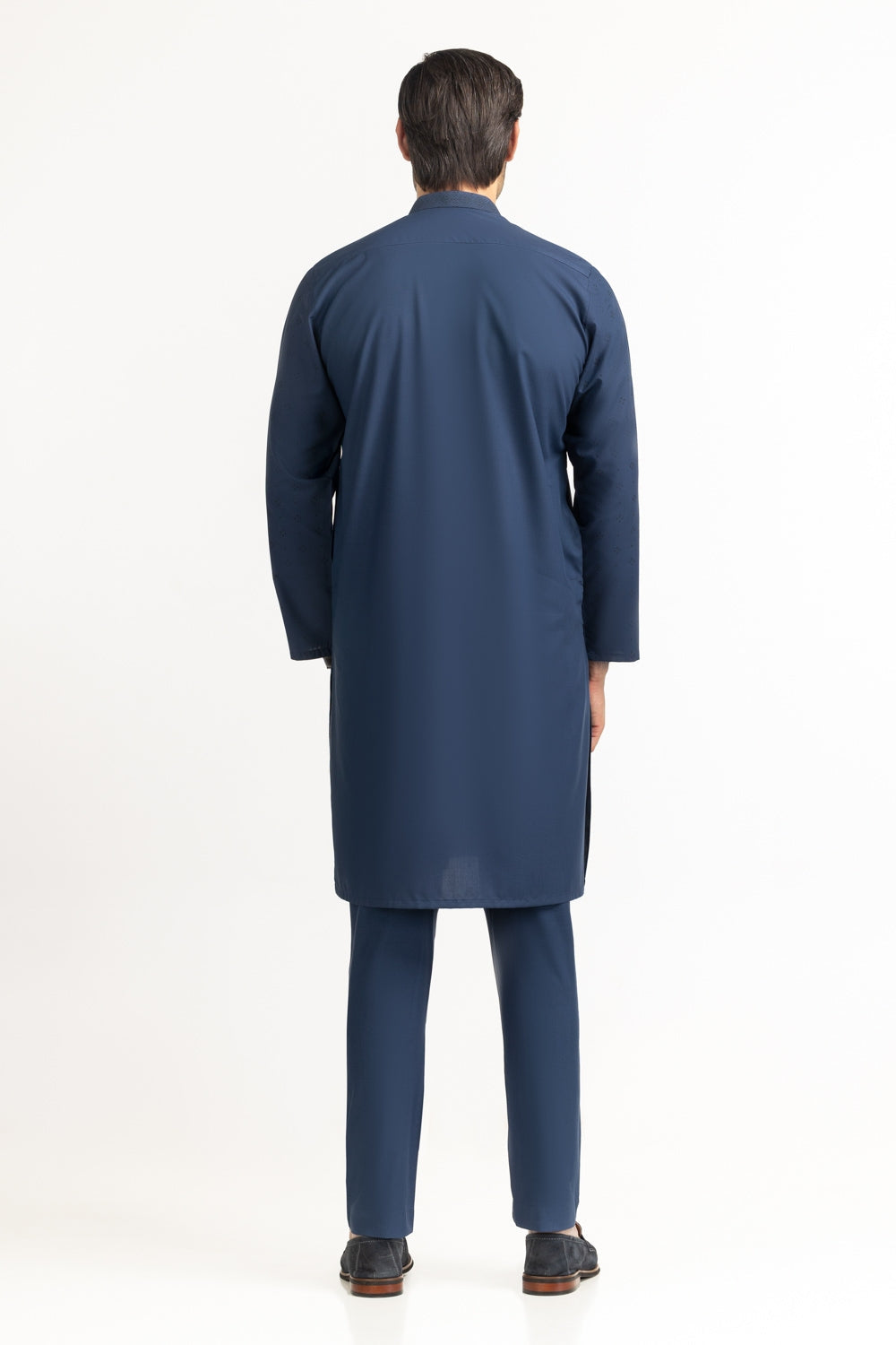 Crafted with simplicity and elegance, this three-piece Taupe Blended Fabric Formal Kameez Shalwar, paired with a waistcoat, exudes sophistication