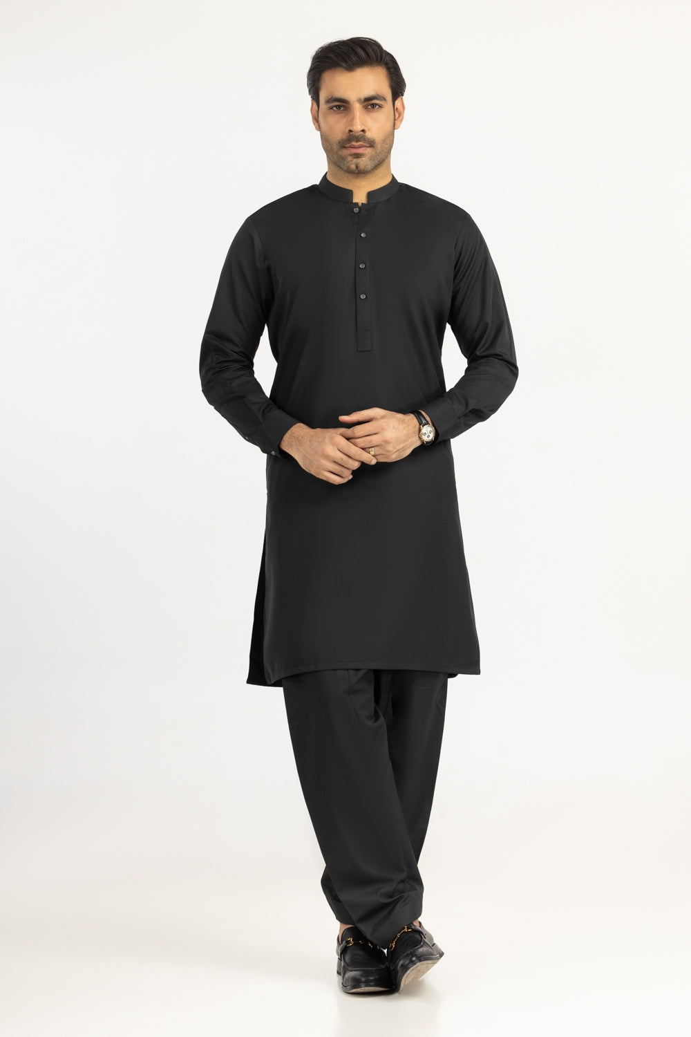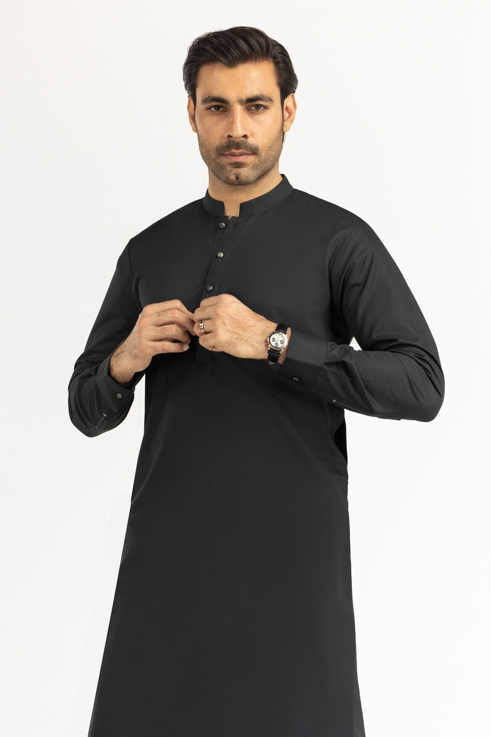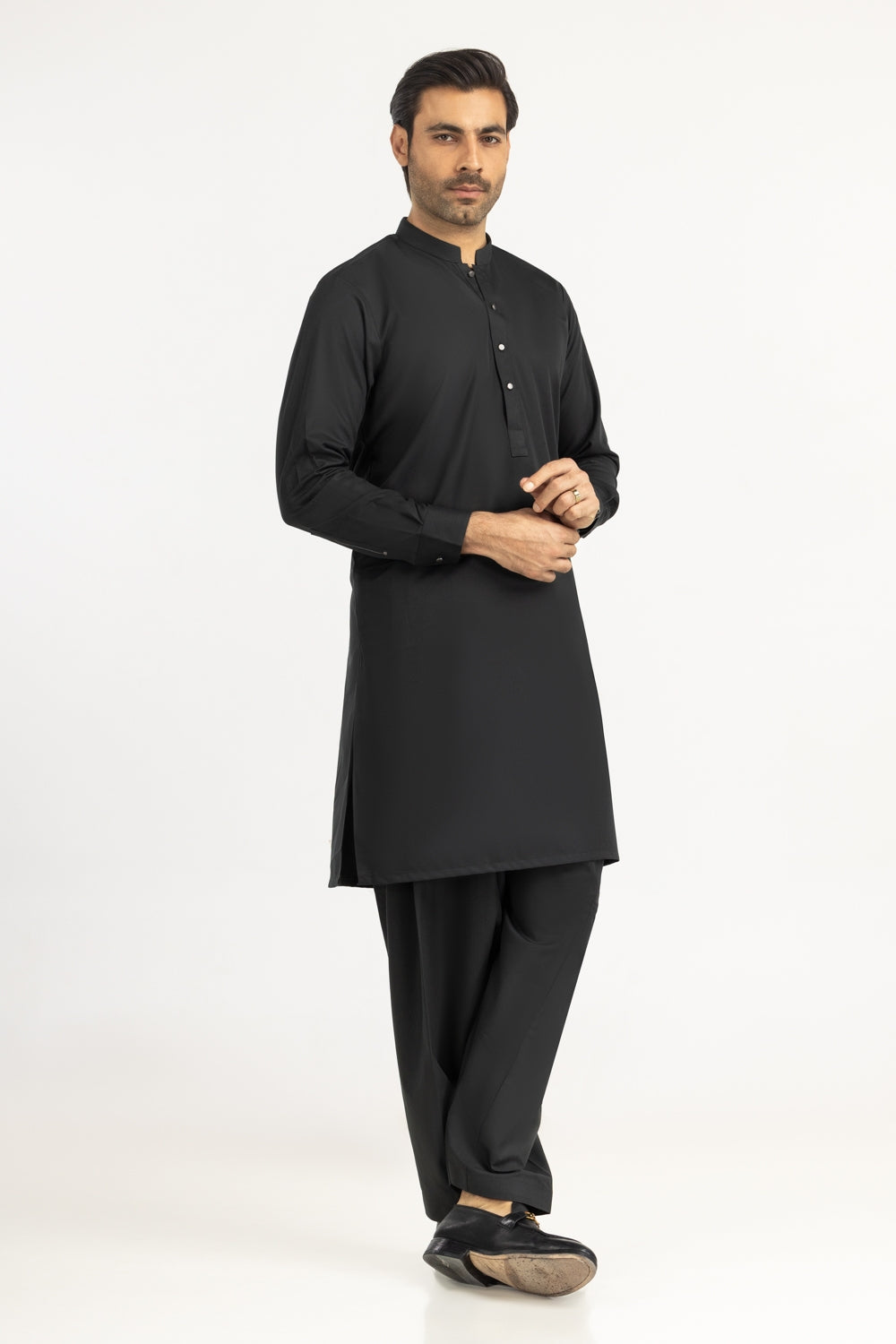 Crafted with simplicity and elegance, this three-piece Taupe Blended Fabric Formal Kameez Shalwar, paired with a waistcoat, exudes sophistication