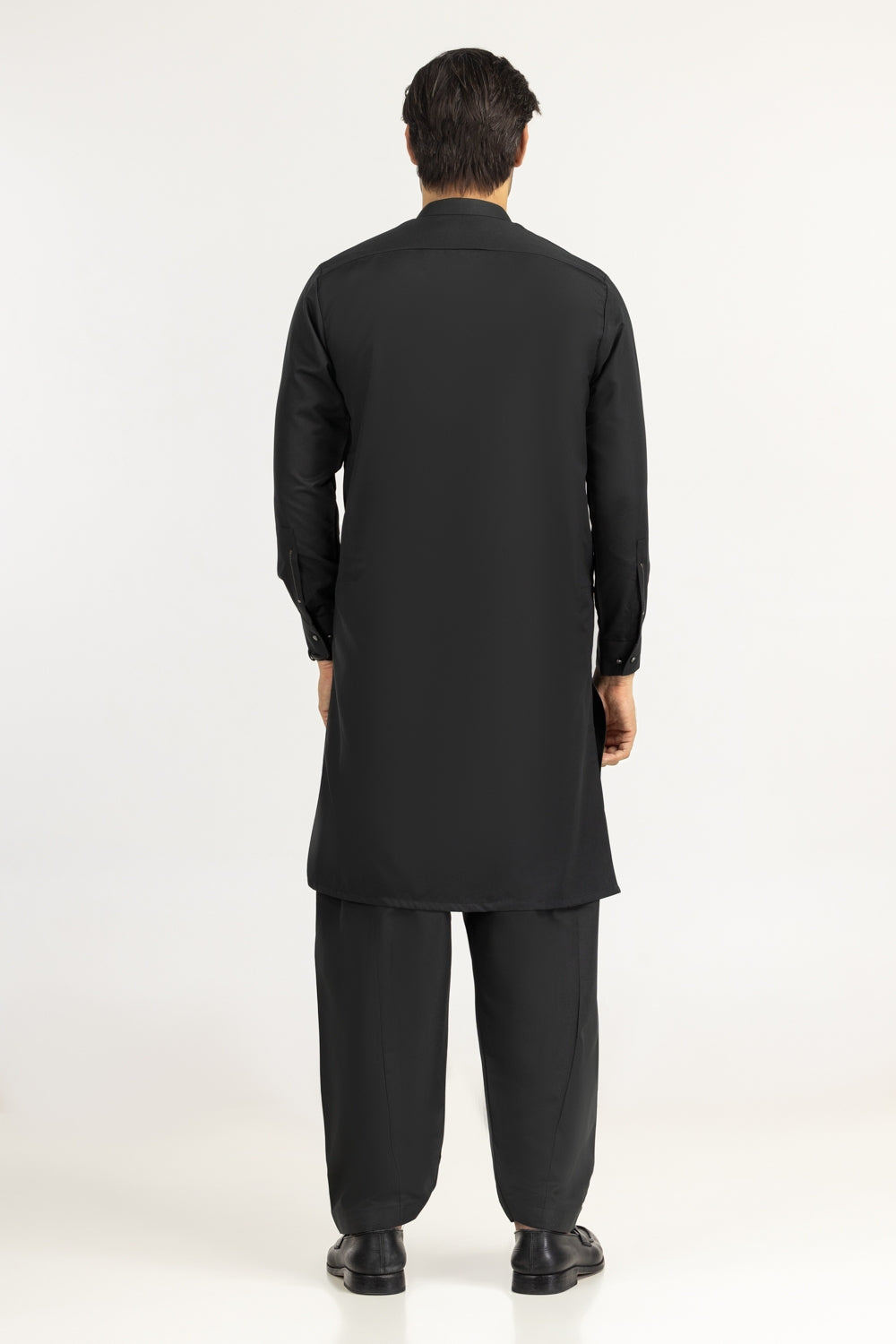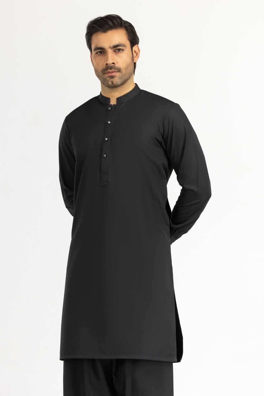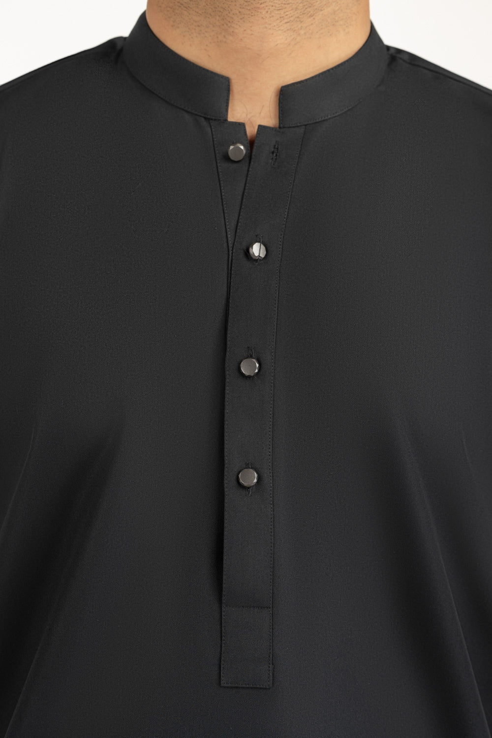 Crafted with simplicity and elegance, this three-piece Taupe Blended Fabric Formal Kameez Shalwar, paired with a waistcoat, exudes sophistication