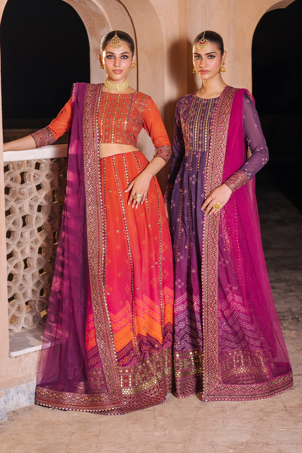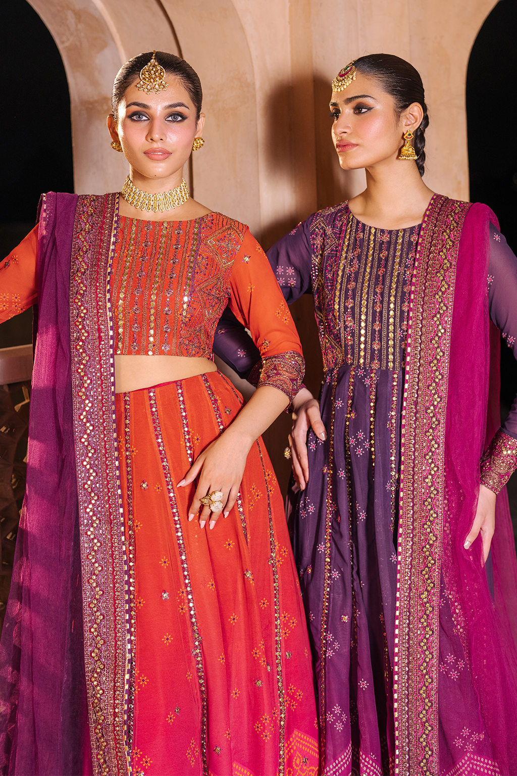 Frock Front Bodice: Embroidered Printed Chiffon With Foil Work